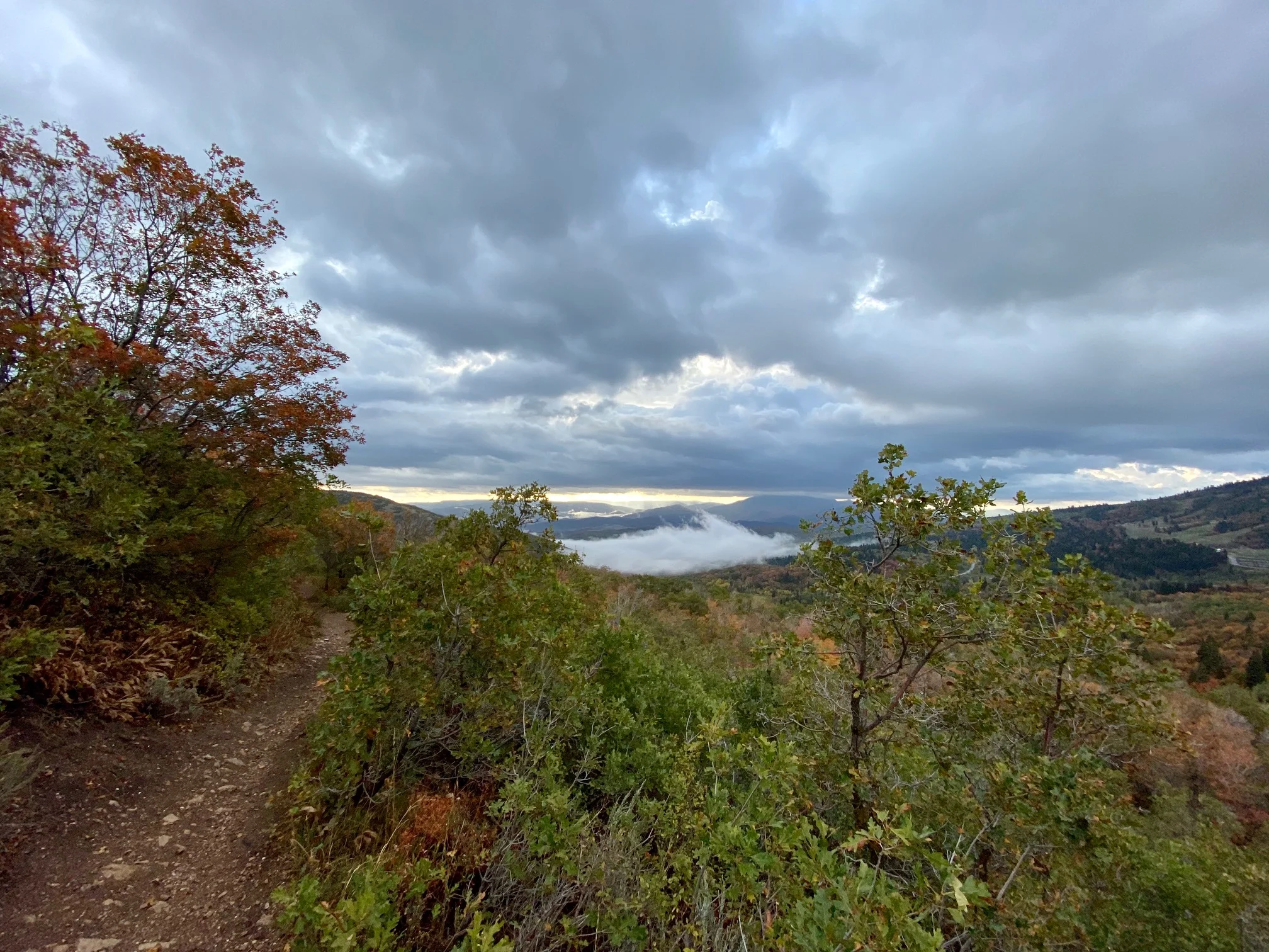 Again, a few days later, we wanted to get the dogs out to run off some energy and went up one that we’ve done numerous times and is nice and close to the house. Again, in Ogden we went up the Indian Peak Trail. This trail started off clear of snow and slowly as we climbed and rounded the side of the mountain the trail changed to deep snow and shade which dropped the temp to below freezing. But, we found a great lookout spot to take a break and admire the snow/frost covered pine trees.